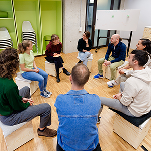 Gemeinsam mit anderen Studierenden innovative Ideen entwickeln und vorantreiben: Ausserhalb geplanter Events dient das Ideenlabor als Social Hub für spontane Treffen, kollaboratives Arbeiten oder für Meetings von Fachschaften oder Studierendenvereinen.