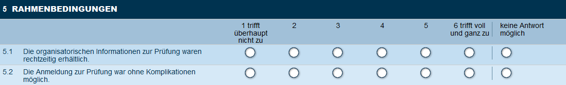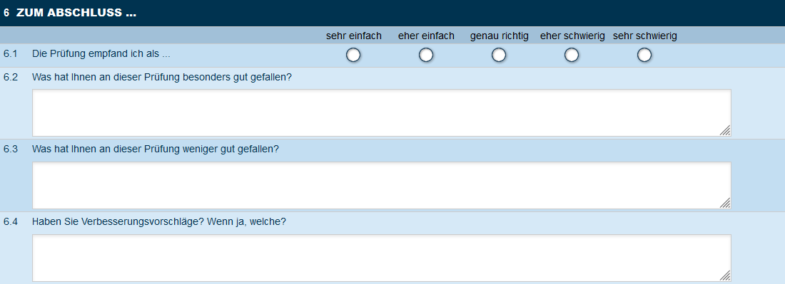 "Fairness" einer Prüfung und die Note sind nicht Gegenstand dieser Evaluation.