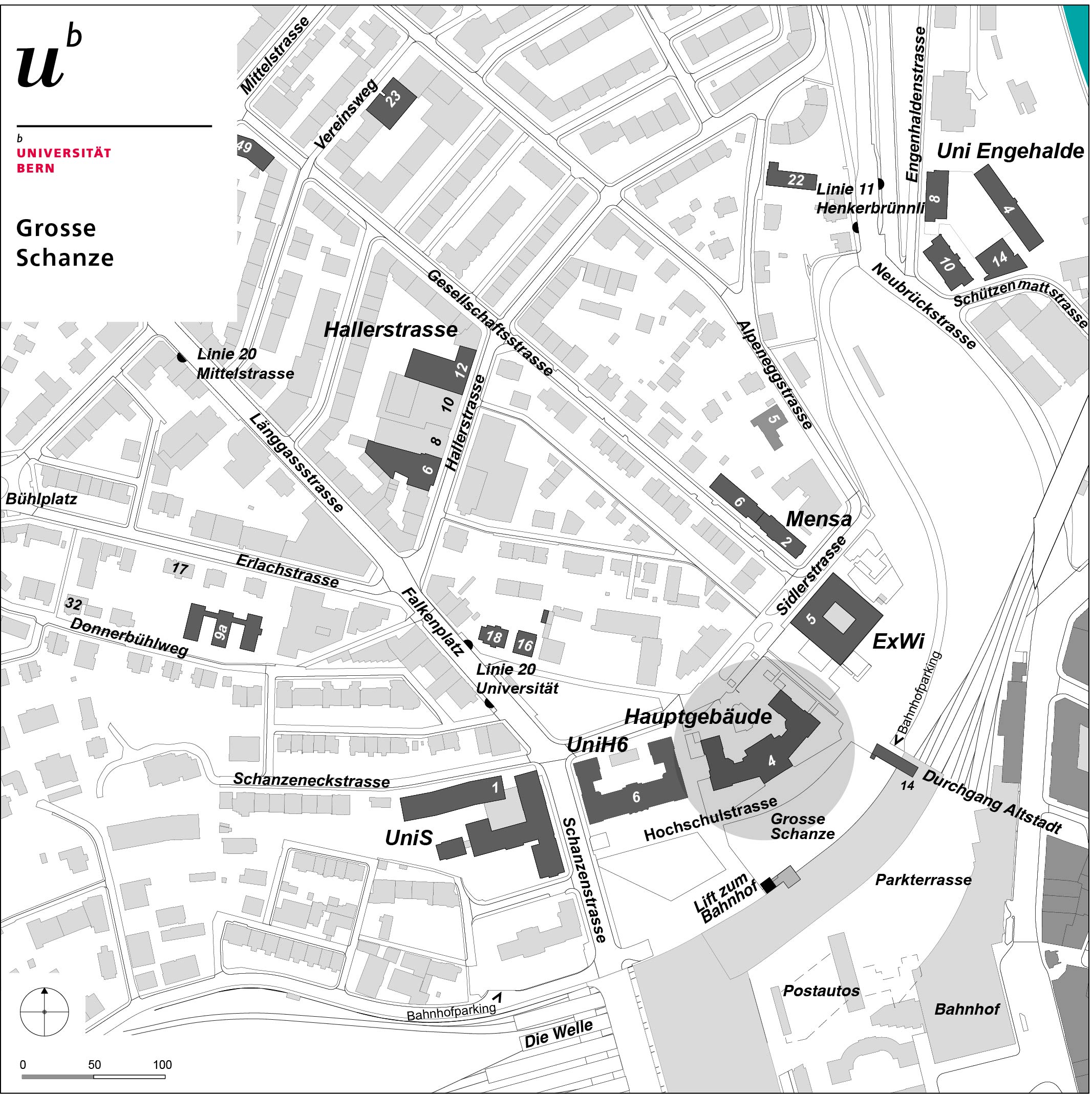 Öffentlicher Verkehr; Linie 20 Länggasse, Haltestelle Universität